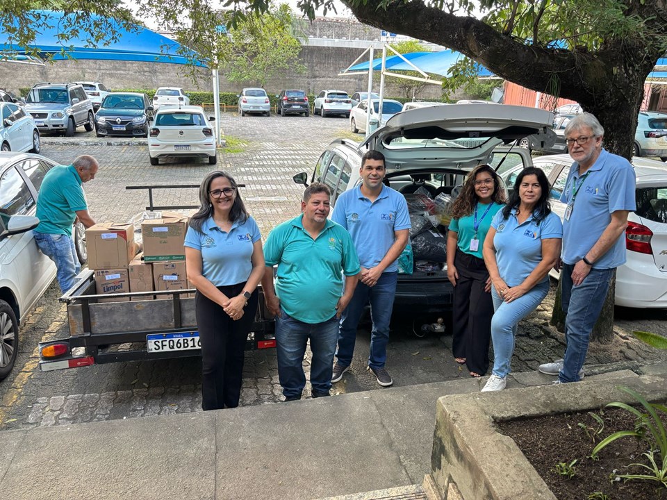 A entrega foi recebida pelo presidente da APAE de Viana, Sr. Braz Antônio da Silva, acompanhado da Sra. Brunella, que compareceram ao Ipem-ES no período da tarde. Os materiais doados incluem itens essenciais para o dia a dia da instituição, como sacos para lixo, esponjas de aço, panos multiuso, embalagens para freezer, adoçante dietético, cadernos, lenços umedecidos, entre outros produtos de grande utilidade.