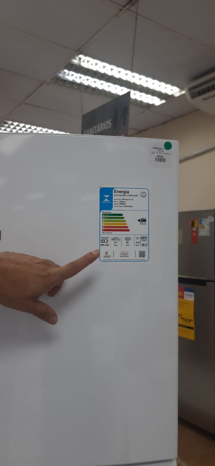 Os refrigeradores de uso doméstico não precisam ser certificados, mas devem ostentar a Etiqueta Nacional de Conservação de Energia (ENCE). Essa etiqueta deve possuir o número de registro no Inmetro.
